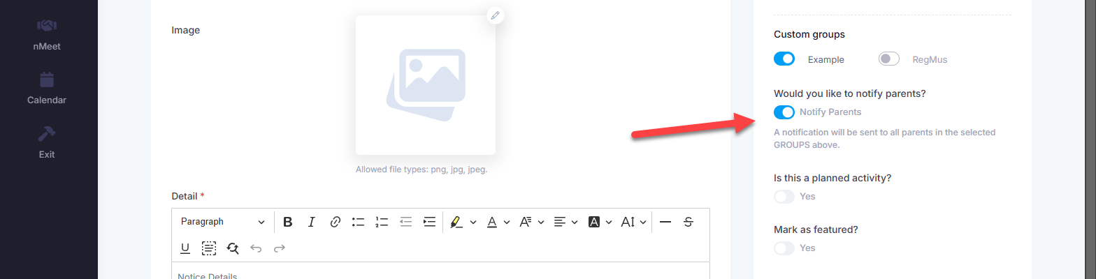Ensure that the “Notify parents” button has been activated prior to publishing. You can check this if you go into “Maintain Notices” and select “edit” in the “Actions” drop down. The home groups/custom groups also have to be selected prior to publishing the notice.