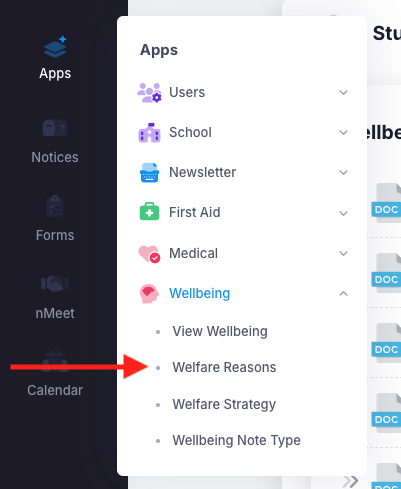 Prior to using the Wellbeing module, you will need to populate your Welfare reason types. These can be academic, behavior, social, etc. for example. Welfare referral reason types are different for all schools, hence, it is better that you populate them to make it better suited to your school.