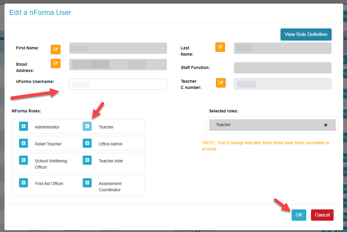 2. Add a nForma username and role to their profile.