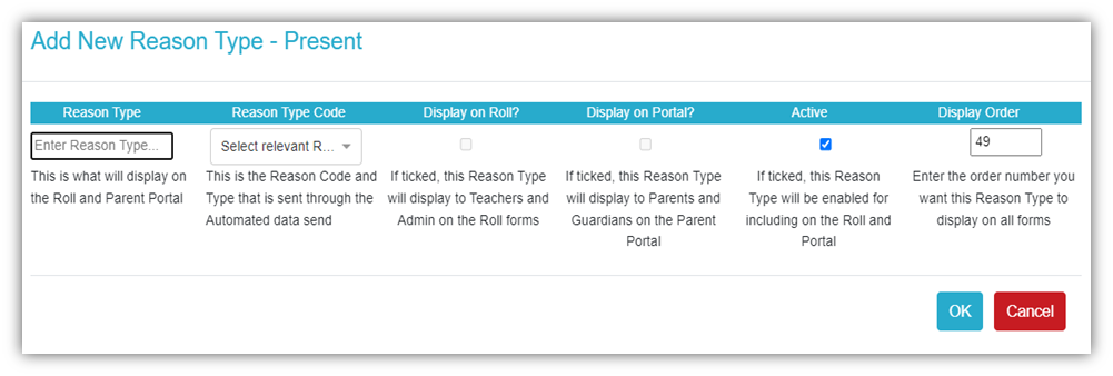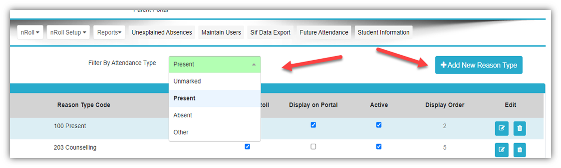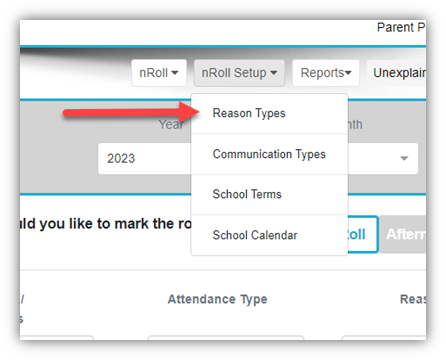 To add another reason type to your roll, go into "nRoll". Once there, go into "nRoll setup" then "Reason Types".