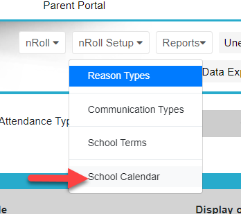 To add a school closure day, go into "nRoll". Select "nRoll Setup" and "School Calendar".