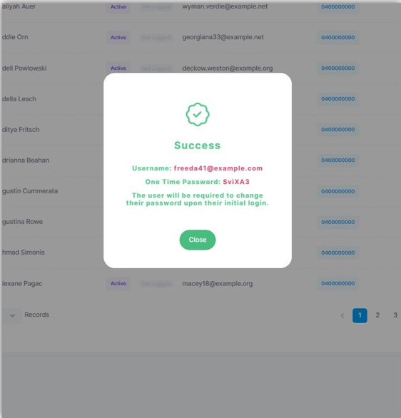 You will then be presented with the user's new temporary password and email address that is linked to nForma. Copy the text and send the information to the parent. They will then be able to reset their password. The temporary password will last for around 2 hours.