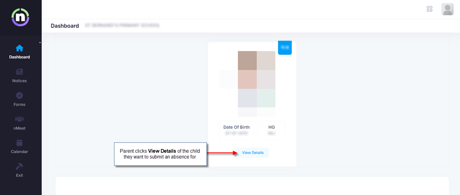 From the dashboard, they select the child they want to send an absence for: