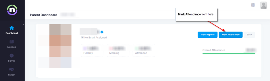 In the student's profile, they click 'Mark Attendance':