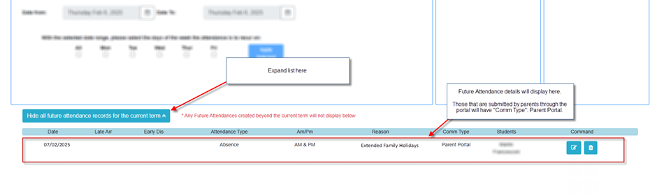 Scroll down and click "Show All Future Attendance Records for the Current Term".