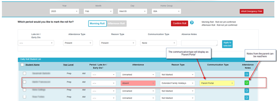 If the date selected by the parent is in the future, then a future attendance record will be created. You can view these in nRoll -> Future Attendance.
