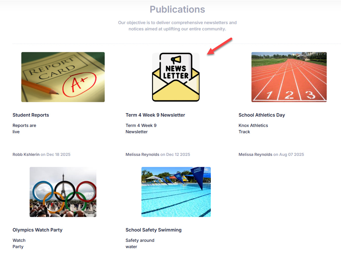 - Click on it and it will open the link to the Newsletters via the Notices icon