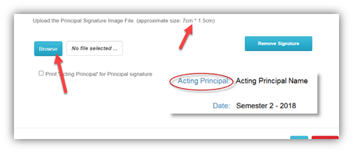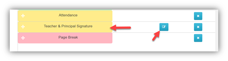 To upload the principal's signature, go to Home then Student Report Layout. Click on the edit button for the "Teacher and Principal Signature" tile.