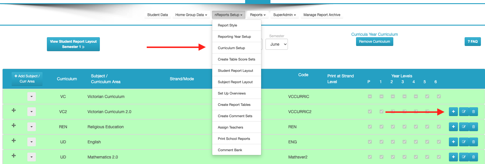 Go into "nReports" > "nReports Setup" > "Curriculum Setup". Go to the subject and lick on the "+" icon.