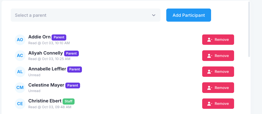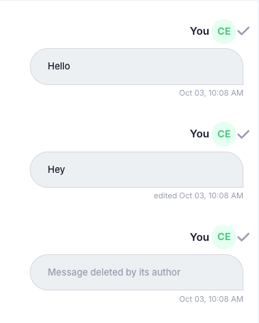 You will be able to see the various receipts, eg. read, deleted and edited messages. To view who has read the latest message, go into the participants tab. All other changes will be shown within the chat.