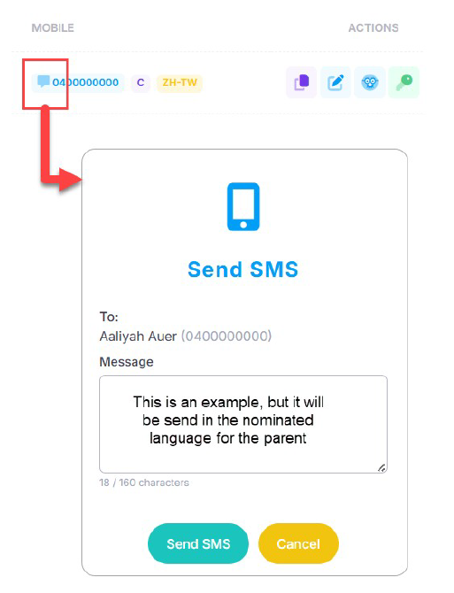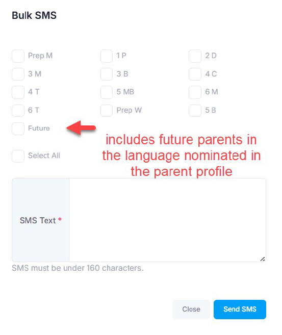 SMS can also be sent to "future" parents loaded in nForma Portal